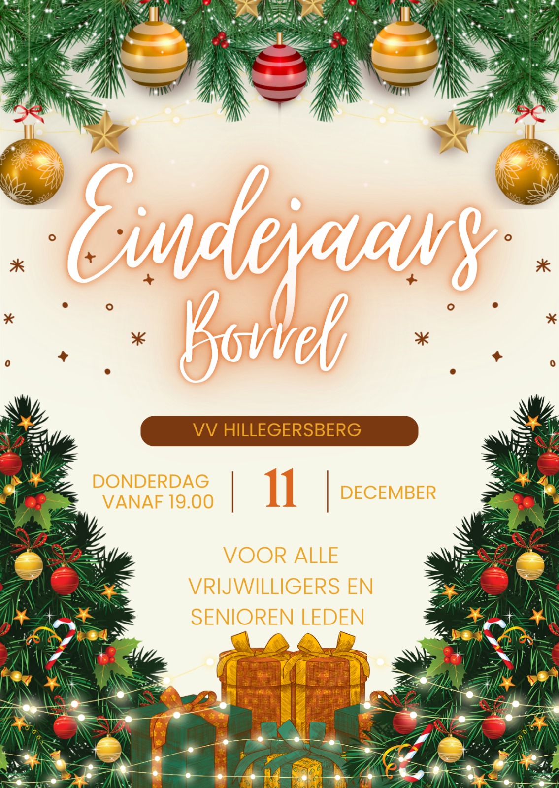 Op donderdag 11 december willen we samen met alle vrijwilligers en seniorenleden het jaar 2025 feestelijk afsluiten. De inloop is vanaf 19.00 uur in de kantine van VV Hillegersberg.